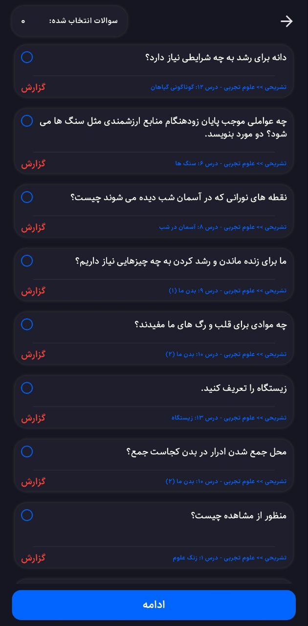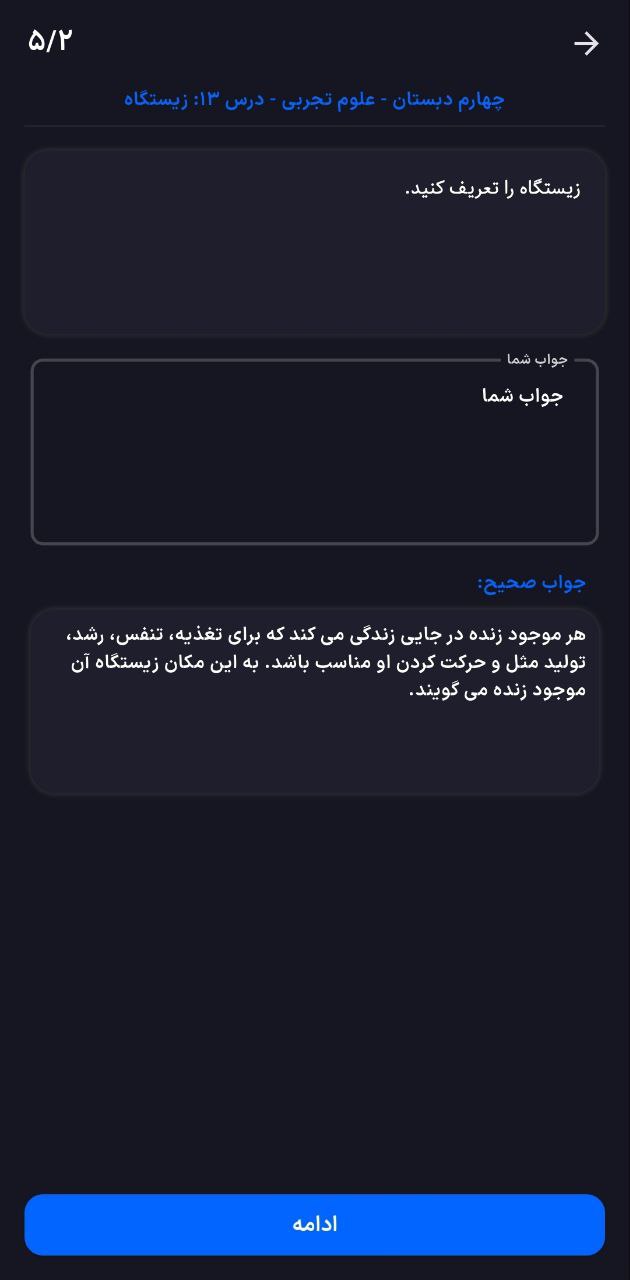 پرسشگر هوشمند: مرور و تمرین تعاملی با پرسشهای متناسب با سطح هر دانشآموز.